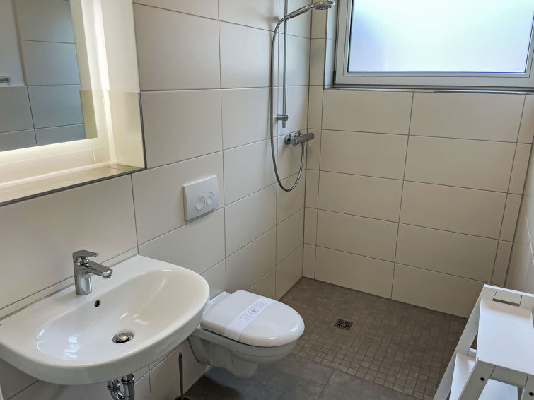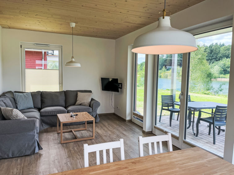 Appartement 3-kamers 58 m2, op de begane grond. Comfortabel en modern ingericht: groot woon-/eetkamer met Sat-TV (Flatscreen TV). Uitgang naar het terras. 1 kamer met 1 2-pers bed (180 cm, lengte 200 cm). 1 kamer met 2 bedden (90 cm, lengte 200 cm). Open keuken (oven, afwasmachine, 4 keramische glas kookplaten, broodrooster, waterkoker, elektrische koffiemachine). Douche/WC. Verwarming. Terrasmeubelen, ligstoelen. Zeer mooi uitzicht op het meer. Ter beschikking: kinderstoel. Internet (WiFi, gratis). Geschikt voor families. Maximaal 2 huisdieren/honden toegestaan.