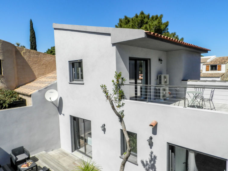 St Cyprien 8 km van Porto Vecchio: Rijtjeshuis "St Cyprien Plage", bouwjaar 2017. In de plaats Saint Cyprien, rustige ligging in een woonwijk, 100 m van zee, 100 m van het strand. Voor alleengebruik: buitendouche. Toegangsweg tot aan het huis. Winkel 200 m, levensmiddelenwinkel 150 m, supermarkt 1 km, restaurant, café 100 m, bushalte 210 m, zandstrand "St Cyprien", duikschool 100 m. Jachthaven 8 km, zeilschool 200 m, manege 2.5 km. Attracties in de buurt: Figari 30 km, Bonifacio 38 km, Solenzara 41 km, Propriano 82 km, Bastia 130 km. Auto noodzakelijk.