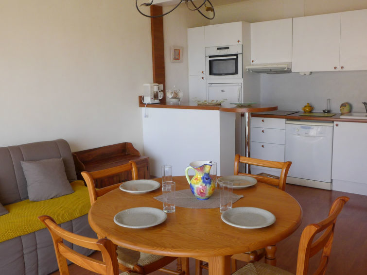 Appartement 2-kamers 43 m2 op de 2e verdieping, op het noorden gelegen. Woon-/eetkamer met 1 2-pers divanbed (140 cm, lengte 190 cm), TV (Flatscreen TV), elektrische rolluiken. Uitgang naar het balkon. 1 kamer met 1 2-pers bed (140 cm, lengte 190 cm), elektrische rolluiken. Uitgang naar het balkon. Open keuken (afwasmachine, 3 keramische glas kookplaten, broodrooster, waterkoker, elektrische koffiemachine, combimagnetron) met bar. Douche/WC. Parketvloeren. Balkon 3 m2, balkon 5 m2. Ligstoelen (2). Uitzicht op zee. Ter beschikking: wasmachine, strijkijzer. Internet (Internet (WiFi), extra). Rookmelders.