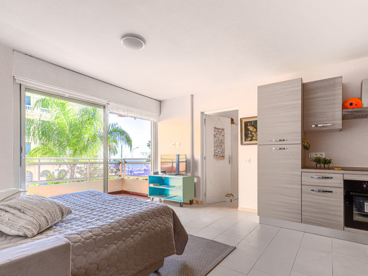 Appartement 2-kamers 60 m2 op de 2e verdieping. Licht, mooi en modern ingericht: woon-/slaapkamer met panoramavenster met 1 2-pers divanbed (1 x 140 cm, lengte 190 cm), Flatscreen TV en air-conditioning. Uitgang naar het terras, op het zuiden. 1 groot kamer met 1 2-pers bed (1 x 140 cm, lengte 190 cm), air-conditioning. Uitgang naar het terras, op het oosten met douche/bidet/WC. Open keuken (oven, afwasmachine, 4 inductiekookplaten, broodrooster, waterkoker, magnetron, elektrische koffiemachine). Douche/bidet/WC. Terras 10 m2, op het zuiden gelegen. Terrasmeubelen, zitgelegenheid. Zeer mooi uitzicht op de haven. Ter beschikking: wasmachine. Internet (WiFi, gratis). Garage (1 Auto). 1 klein huisdier/hond toegestaan. Rookmelders. Aanbod door een particulier volgens art. 155, IV van CGI. 06083003278GA