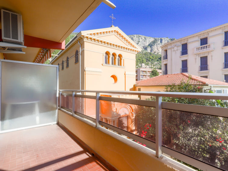 Residentie "Le Diplomate", van 6 verdiepingen. In de wijk Garavan, centrale, zonnige ligging in een woonwijk, 50 m van zee, 600 m van het strand, op het zuiden. In het huis: lift, centrale verwarming. Eigen garage. Winkel 1 km, levensmiddelenwinkel, supermarkt 800 m, restaurant 100 m, bakkerij 500 m, café 800 m, centrum te voet bereikbaar in 20 minuten, bushalte "Garavan 1 8 18" 100 m, treinstation "Menton Garavan" 300 m, stenenstrand "Hawai" 350 m. Jachthaven 50 m, golfterrein (18 holes) 23 km, tennis 3 km. Attracties in de buurt: Jardin botanique exotique du Val Rahmeh 800 m, Musée Jean Cocteau 2 km, Monaco 14 km, St Agnès 14 km, Ventimiglia (Italie) 10 km, Nice 32 km. Wandelgebied Parc National du Mercantour 30 km. Auto noodzakelijk.