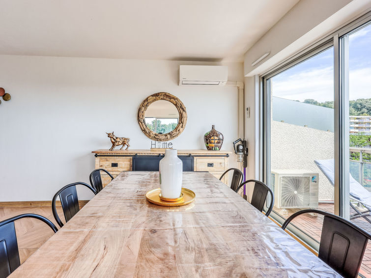 Appartement 2-kamers 55 m2 op de 2e verdieping. Licht, comfortabel en mooi ingericht: woon-/eetkamer met 1 2-pers divanbed (140 cm, lengte 190 cm), TV (Flatscreen TV), air-conditioning. Uitgang naar het terras. 1 kamer met 1 2-pers bed (140 cm, lengte 190 cm), air-conditioning. Open keuken (oven, afwasmachine, 4 inductiekookplaten, broodrooster, waterkoker, magnetron, diepvriezer, elektrische koffiemachine, pads voor de koffiemachine (Senseo) extra). Douche, aparte WC. Heteluchtverwarming. Groot terras 24 m2, 2 terrassen 5 m2. Terrasmeubelen, elektrische barbecue. Uitzicht op zee. Ter beschikking: wasmachine, droger, strijkijzer, kinderbed tot 2 jaar. Internet (WiFi, gratis). Parkeerplaats nr. 701 (1 Auto). Niet rokers woning. TV alleen FR. Rookmelders. Aanbod door een particulier volgens art. 155, IV van CGI. 13028002054CU