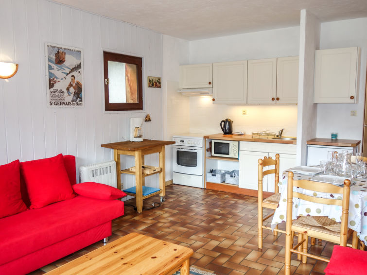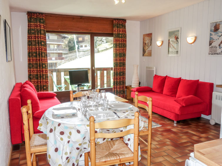 "Les G'rets", appartement 2-kamers 42 m2, op de begane grond. Hal. Woon-/eetkamer met 1 2-pers divanbed (140 cm), TV, Flatscreen TV, radio, CD-speler en DVD. 1 kamer met 2 bedden (80 cm). Uitgang naar het terras, op het zuiden en op het oosten. Kookhoek (4-pits kookplaat, oven, broodrooster, waterkoker, magnetron, elektrische koffiemachine). Badkamer, aparte WC. Elektrische verwarming. Balkon 4 m2, op het oosten gelegen. Balkonmeubilair. Zeer mooi panoramazicht op de bergen en de plaats. Ter beschikking: wasmachine. Internet (Internet (WiFi), extra). Parkeerplaats. Niet rokers woning. TV alleen FR. Rookmelders.