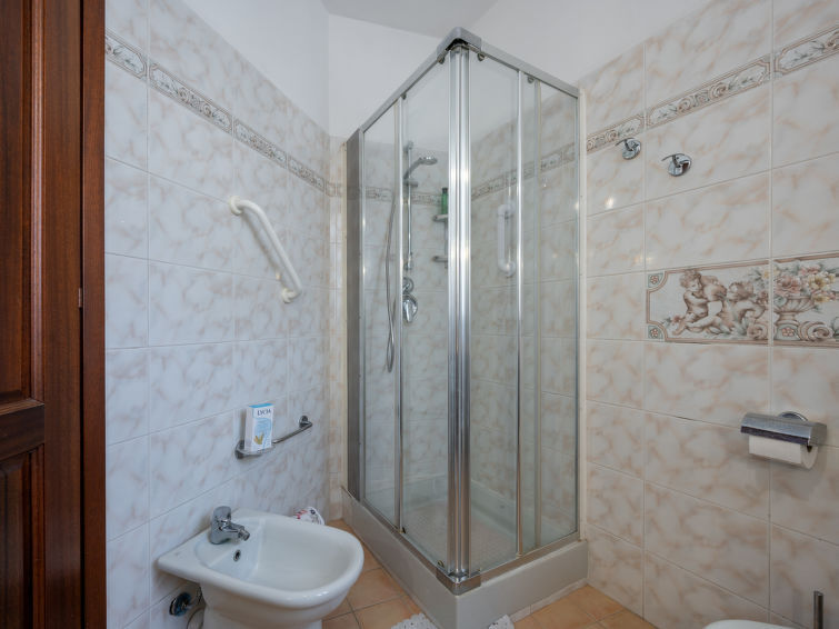 "La Casa del Nonno", huis 3-kamers 55 m2 op de 1e verdieping. Comfortabel en smaakvol ingericht: woon-/eetkamer met eettafel, TV en air-conditioning. Uitgang naar de tuin, naar het balkon. 1 2-pers. kamer met TV. Uitgang naar het balkon. 1 kamer met 1 x 2 stapelbedden. Uitgang naar het balkon. Kookhoek (oven, afwasmachine, 4 kookpitten (vlammen), broodrooster, waterkoker, magnetron, elektrische koffiemachine). Douche/bidet/WC. Gas-verwarming. Groot balkon, prieel. Terrasmeubelen. Ter beschikking: haardroger. Internet (WiFi, gratis). Geschikt voor families. Maximaal 1 huisdier/hond toegestaan. IT005076C2SMDZI8UY