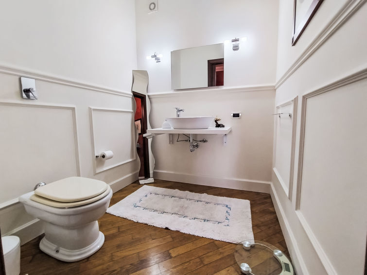 Halfvrijstaand huis 4-kamers 150 m2, op de begane grond. Comfortabel en smaakvol ingericht: woon-/eetkamer met air-conditioning en heteluchtverwarming. Uitgang naar de tuin. 1 2-pers. kamer met douche/bidet/WC en air-conditioning. Uitgang naar de tuin. 1 2-pers. kamer met air-conditioning. Uitgang naar het terras. 1 kamer met 1 bed, 1 uitschuifbaar bed en air-conditioning. Kookhoek (mini-oven, afwasmachine, 2 kookpitten (vlammen), broodrooster, waterkoker, magnetron, elektrische koffiemachine). Bad/bidet/WC, douche/bidet/WC, aparte WC. Verwarming, heteluchtverwarming. Verwarming alleen beschikbaar van 01.12. tot 31.03. Parketvloeren, vloerbedekking. Balkon 8 m2, terras 24 m2, overdekt. Terrasmeubelen, barbecue. Panoramazicht op zee en de tuin. Ter beschikking: wasmachine, kluis, strijkijzer, kinderstoel, kinderbed tot 2 jaar (extra), haardroger. Internet (Internet (WiFi), gratis). Rookmelders, brandblusser. IT089001C2LT8AWL3A
