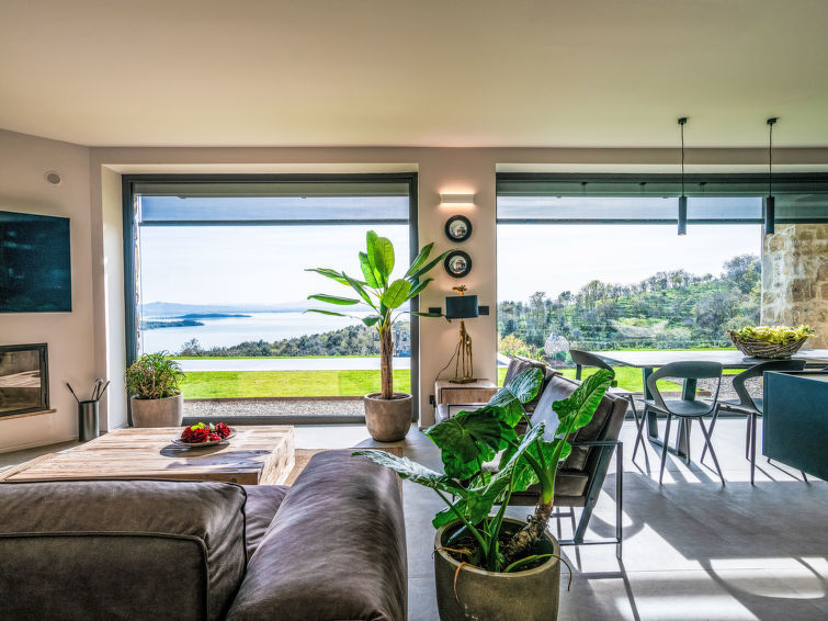 Moderne, luxueuze villa "Feronia", vrijstaand, bouwjaar 2024, omgeven door weiden en velden. 9 km van het centrum van Passignano sul Trasimeno, 5 km van het meer. Voor alleengebruik: park 1 ha, openluchtzwembad verwarmd (16 x 3 m, 140 cm diepte, seizoensgebonden beschikbaarheid: 01.Jan. - 31.Dec.) met zout-elektrolyse. Onregelmatig zwembad. Douche/WC bij het zwembad, prieel, tuinmeubelen. Huishoudelijke hulp dagelijks op verzoek (extra). Kok op verzoek (extra). Ontbijt volpension half pension op aanvraag (extra). Toegangsweg (300 m onverharde weg). Overdekte parkeerplaats (voor 2 auto's). Levensmiddelenwinkel, supermarkt 9 m, restaurant 5 km, bushalte 1.6 km, treinstation "Perugia-Roma- Firenze" 9 km, veerboot "Isole Del Trasimeno" 9 km, kiezelstrand 7 km, meer (zwemmen) "Trasimeno" 5 km. Attracties in de buurt: Castel Rigone 3 km, san Feliciano 12 km, Tuoro Sul Trasimeno 14 m, Perugia 26 km, Cortona 27 km, Castiglione Del Lago 28 km. De eigenaar accepteert geen jeugdgroepen.