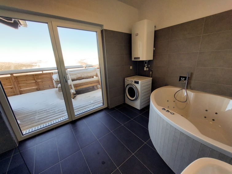 Chalet 4-kamers 100 m2. Het objekt is geschikt voor 6 volwassenen. Ruim en licht, modern en smaakvol ingericht: hal met aparte WC. Groot, open woon-/eetkamer met internationale TV-zenders. Uitgang naar het terras. 1 2-pers. kamer 15 m2. Uitgang naar het terras. 2 2-pers. kamers 15 m2 met bad, wastafel, hot tub en elektrische verwarming. Uitgang naar het terras. Open keuken (broodrooster, waterkoker, grill, elektrische koffiemachine). Mooi uitzicht in de verte op de bergen. Ter beschikking: wasmachine, droger. Internet (Internet (WiFi), gratis). Parkeerplaats (3 Auto's) op 20 m. Geschikt voor families. Niet rokers woning. Brandblusser.