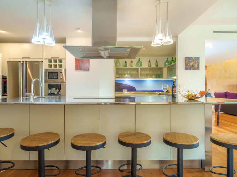 "La Forca", villa 7-kamers 500 m2 op 2 verdiepingen. Het objekt is geschikt voor 10 volwassenen. Ruim en licht, volledig gerenoveerd, doelmatig en mooi ingericht: groot woon-/eetkamer met eettafel, Sat-TV, Digitale TV, Flatscreen TV, air-conditioning en heteluchtverwarming. Uitgang naar de zitplaats in de tuin, naar het zwembad. 1 groot 2-pers. kamer met Kleedkamer met 2 bedden (90 cm, lengte 200 cm), wastafel, bad/douche/WC, air-conditioning en heteluchtverwarming. Uitgang naar de zitplaats in de tuin, naar het zwembad. 1 groot 2-pers. kamer met panoramavenster met 2 bedden (90 cm, lengte 200 cm), air-conditioning en heteluchtverwarming. Uitgang naar de zitplaats in de tuin, naar het zwembad. Woonkeuken (oven, afwasmachine, 3 keramische glas kookplaten, broodrooster, waterkoker, magnetron, diepvriezer, elektrische koffiemachine, kookeiland). Douche/WC, aparte WC. Bovenverdieping: 2 groot 2-pers. kamers, elke kamer heeft 2 bedden (90 cm, lengte 200 cm), wastafel, douche/WC, Digitale TV, Flatscreen TV, air-conditioning en heteluchtverwarming. 1 2-pers. kamer met 2 bedden (90 cm, lengte 200 cm), Digitale TV, Flatscreen TV, air-conditioning en heteluchtverwarming. Groot balkon, ruime zithoek in de tuin, prieel. Terrasmeubelen, balkonmeubilair, barbecue, ligstoelen, loggia. Panoramazicht op het landschap en de plaats. Ter beschikking: wasmachine, droger, strijkijzer, kinderstoel, kinderbed tot 2 jaar, haardroger. Internet (WiFi, gratis). Parkeerplaats bij het huis. Rookvrij huis. Het zwembad genoemd in de beschrijving is voor privé gebruik. ETV/11103 // Reg. Nr.: ESFCTU00000701100079486100000000000000000000ETV/111030