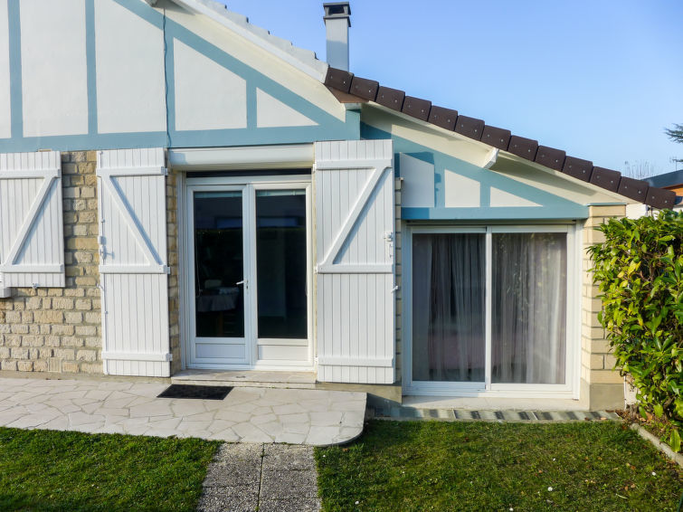 Merville Franceville 4 km van Cabourg: Eengezinswoning "Villa Hélios". In de plaats, 350 m van het centrum van Merville Franceville, 350 m van zee, van het strand, op het zuidwesten. Voor alleengebruik: tuin 300 m2. Glijbaan, terras (8 m2), parkeerplaats op het terrein. Winkel, levensmiddelenwinkel, supermarkt, restaurant, bar, bakkerij 350 m, bushalte "Route de Cabourg" 400 m, thermaalbad "Thalazur" 5 km. Golfterrein (18 holes) 3.8 km. De sleuteloverdracht vindt plaats bij het agentschap Interhome in Cabourg, 8 km.