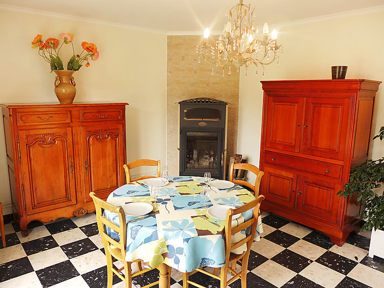 Huis 4-kamers 108 m2. Rustiek ingericht: woon-/eetkamer met TV (Flatscreen TV), elektrische rolluiken. Uitgang naar de tuin, naar het terras. 1 kamer met 1 2-pers bed (140 cm, lengte 190 cm), elektrische rolluiken. 1 kamer met 1 2-pers bed (160 cm, lengte 200 cm). Uitgang naar de tuin. 1 kamer met 1 x 2 stapelbedden (90 cm, lengte 190 cm), douche. Open keuken (2-pits kookplaat, oven, afwasmachine, 2 keramische glas kookplaten, broodrooster, waterkoker, magnetron, diepvriezer, elektrische koffiemachine) met eethoek. Douche/WC. Elektrische verwarming. Terras 8 m2, overdekt, op het zuiden gelegen en op het westen gelegen, tuin 300 m2. Terrasmeubelen. Ter beschikking: wasmachine, droger. Internet (Internet (WiFi), extra). Parkeerplaats (omheind). Rookmelders. FR 54188