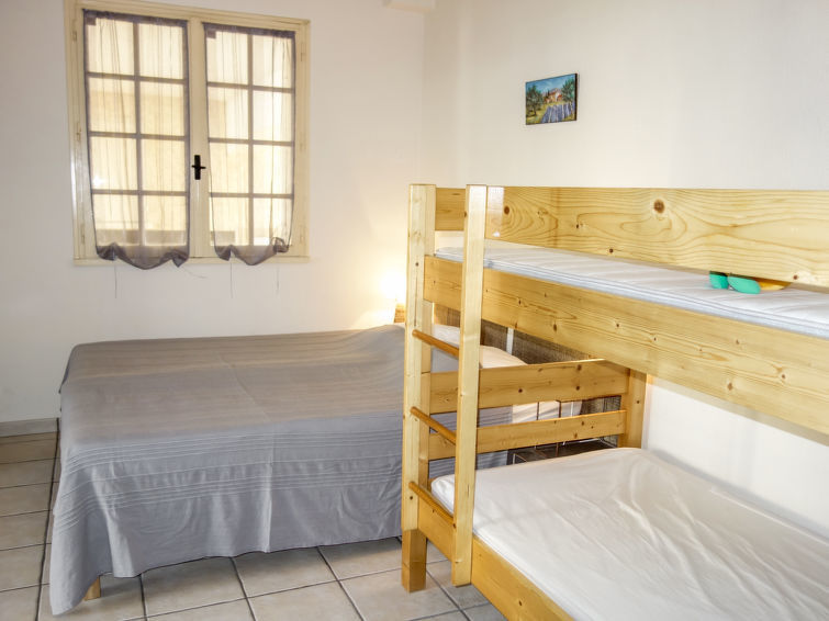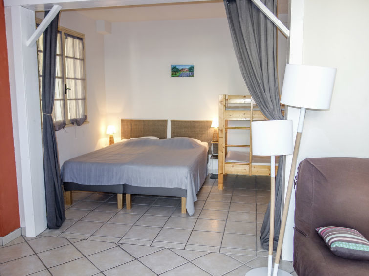 Studio 1-kamer 45 m2 op de 1e verdieping. Comfortabel en mooi ingericht: woon-/eetkamer met TV (Flatscreen TV). Uitgang naar het terras. 1 groot kamer met gordijn met 1 x 2 stapelbedden (80 cm, lengte 190 cm), 1 2-pers bed (2 x 78 cm, lengte 200 cm). Open keuken (4-pits kookplaat, mini-oven, magnetron, diepvriezer, elektrische koffiemachine, pads voor de koffiemachine (Senséo) extra). Bad/WC. Elektrische verwarming. Groot terras 30 m2 gedeeltelijk overdekt, op het noordwesten gelegen. Terrasmeubelen, elektrische barbecue. Ter beschikking: Internet (Internet (WiFi), extra). TV alleen FR. Rookmelders. 83112 000169 W7
