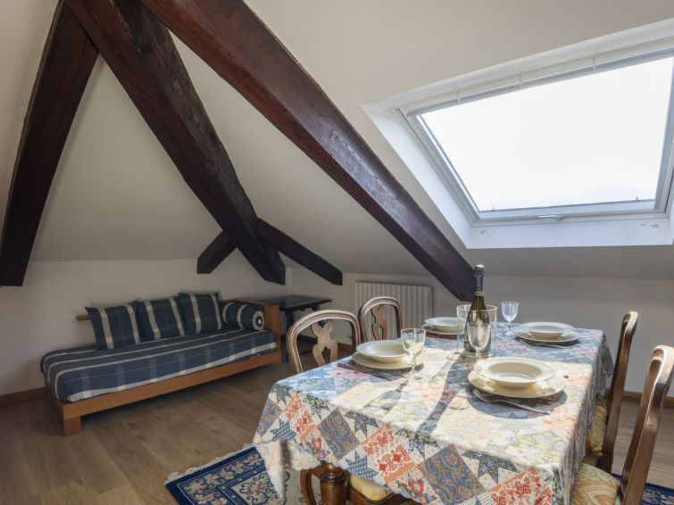 "13", appartement 2-kamers 60 m2 op de 3e verdieping. Afgeschuinde daken, comfortabel ingericht: woon-/eetkamer met 1 2-pers divanbed, eettafel, TV en air-conditioning. 1 2-pers. kamer met afgeschuinde daken. Kleine keuken (afwasmachine, 4 inductiekookplaten, waterkoker, magnetron, elektrische koffiemachine). Douche/bidet/WC. Gas-verwarming. Verwarming alleen beschikbaar van 15.10. tot 15.04. Houten vloeren. Mooi uitzicht op het meer. Ter beschikking: haardroger. Internet (WiFi, gratis). Parkeerplaats nr. 13 (1 Auto). Rookmelders, brandblusser, geen lift. IT103033C2XMJI7FFX