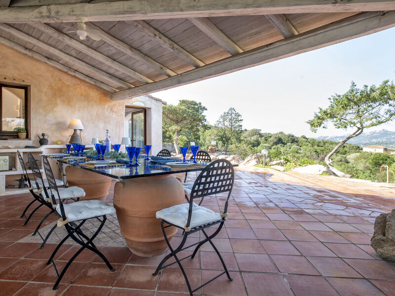 Comfortabele villa "La Giulia Porto Cervo". 2 appartementen in de woning. In de plaats Monticanaglia, 8 km van het centrum van Porto Cervo, 4 km van het centrum van San Pantaleo, geïsoleerde, zonnige ligging op een heuvel, in een woonwijk, 5.5 km van zee, 5.5 km van het strand, aan een doodlopende weg, te midden van groen. Voor alleengebruik: tuin planten en bloemen, wilde tuin, openluchtzwembad niervormig (12 x 6 m, 72 m2, 150 - 180 cm diepte, seizoensgebonden beschikbaarheid: 19.Apr. - 31.Okt.). Buitendouche, hot tub, parkeerplaats bij het huis. Levensmiddelenwinkel 6 km, supermarkt 6 km, restaurant 3 km, bar 2 km, bushalte "Linea 604 - Porto Cervo" 11 km, zandstrand "Cala Volpe" 5 km. Jachthaven 10 km. Attracties in de buurt: Abbiadori 6 km, Arzachena 9 km, Olbia 21 km, Porto Rotondo 20 km, Acqua dream 11 km, Baja Sardinia 12 km. Auto noodzakelijk. Eigenaar woont in apart huisgedeelte. Dieren in de buurt.