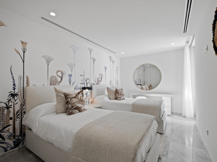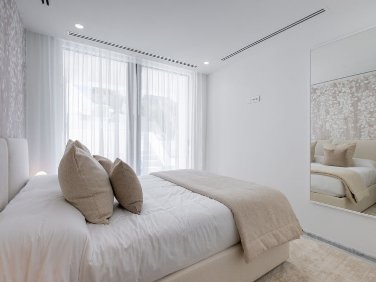 "Panorama Bay", halfvrijstaand huis 4-kamers 289 m2. Ruim en licht, zeer mooi en modern ingericht: open woon-/eetkamer met Digitale TV, air-conditioning, heteluchtverwarming en elektrische rolluiken. Uitgang naar het terras, naar het zwembad. 1 kamer met 1 2-pers bed (1 x 180 cm, lengte 200 cm), douche/WC, dubbele wastafels, air-conditioning, heteluchtverwarming en elektrische rolluiken. Uitgang naar het terras. 1 kamer met 1 2-pers bed (1 x 160 cm, lengte 200 cm), air-conditioning en heteluchtverwarming. Uitgang naar het terras. 1 kamer met 2 bedden, air-conditioning en heteluchtverwarming. Uitgang naar het terras. Open keuken (oven, afwasmachine, 3 inductiekookplaten, broodrooster, waterkoker, magnetron, diepvriezer, elektrische koffiemachine) met air-conditioning en heteluchtverwarming. Douche/WC, aparte WC, dubbele wastafels. Vloerverwarming. Groot terras. Terrasmeubelen, barbecue, ligstoelen, zitgelegenheid. Panoramazicht op zee en de plaats. Ter beschikking: wasmachine, strijkijzer, kinderstoel, kinderbed, haardroger. Internet (WiFi, gratis). Parkeerplaats nr. 3. Rookvrij huis.