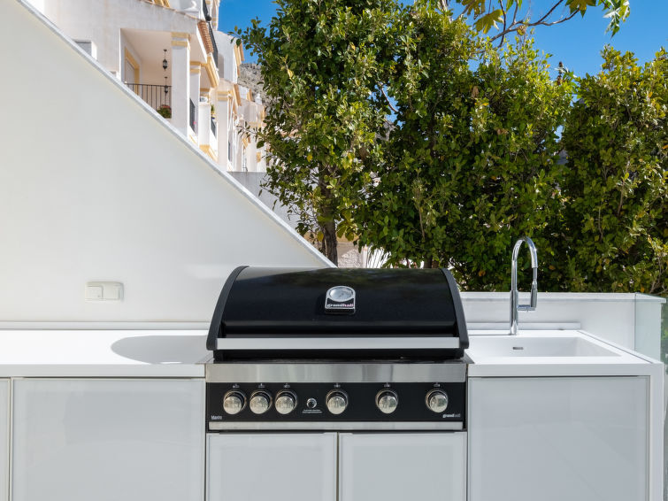 Mascarat: Zeer moderne, mooi residentie "Panorama Bay", bouwjaar 2024. 8 km van het centrum van Calpe, 6 km van het centrum van Altea, rustige, zonnige, verhoogde ligging in een woonwijk, 300 m van zee, 300 m van het strand. Voor alleengebruik: terrein (omheind), tuin met gazon, openluchtzwembad (10 x 2 m, 50 - 180 cm diepte, seizoensgebonden beschikbaarheid: 01.Jan. - 31.Dec.) met trap. Buitendouche, terras, barbecue. Levensmiddelenwinkel 1 km, supermarkt 1 km, restaurant 1.6 km, bushalte 5 km, zandstrand "Playa Arenal" 5 km, rotsstrand "Cala Mascarat" 300 m. Jachthaven, jachthaven 500 m, golfterrein (18 holes) 5 km. Attracties in de buurt: Aqualandia, Mundomar, Terra Mítica, Terra Natura, Benidorm Palace (Benidorm), Les Fonts de l'Algar, Castillo de Guadalest. De eigenaar accepteert geen jeugdgroepen.